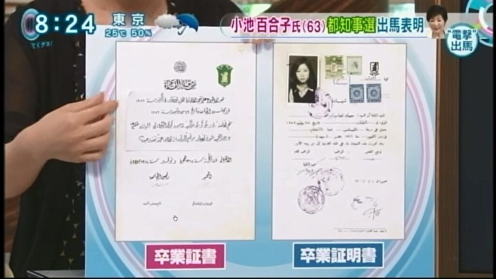 小池百合子さんのカイロ大学の卒業偽装が元側近に告発されました。