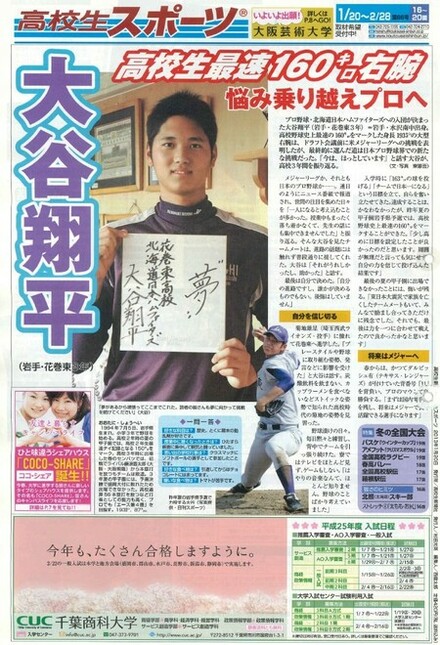 「ドラフト1位で8球団から指名されること。」が目標だった高校時代の大谷翔平選手。
